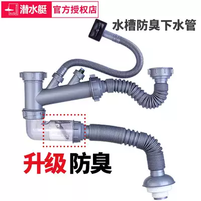 Submarine kitchen sink Sewer pipe set Double slot washbasin accessories dishwashing sink deodorant drain pipe three-way