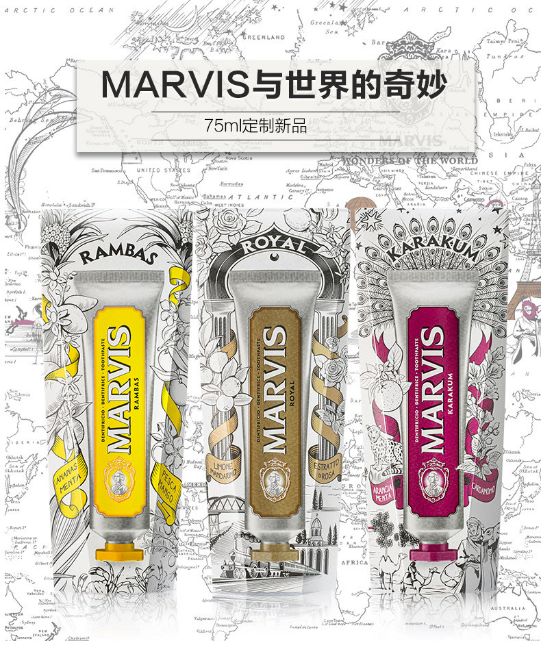 Italian imports Marvis Malls flower tea mint toothpaste 75ml fresh and white to mouth stink Marsee