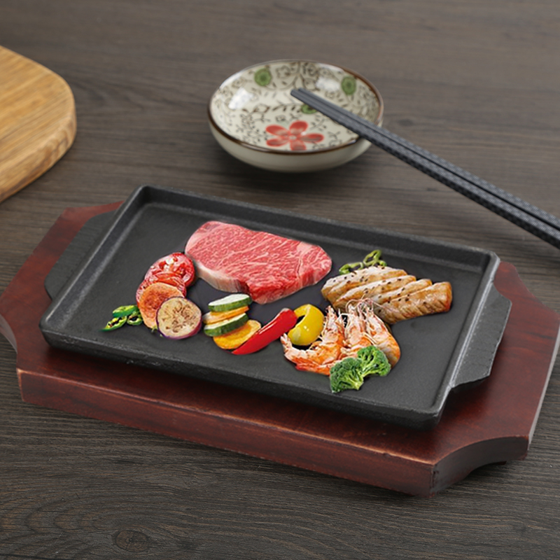 Cast iron Japanese Korean style Teppanyaki rectangular Teppanyaki baking plate Teppanyaki household Teppanyaki barbecue steak plate