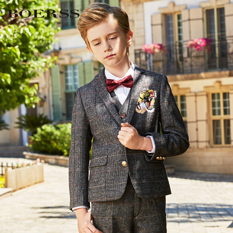 (clear bin ex-gratia) boy's suit suit flowers children's gown The children's wool The walking show has been served with tiger embroidery
