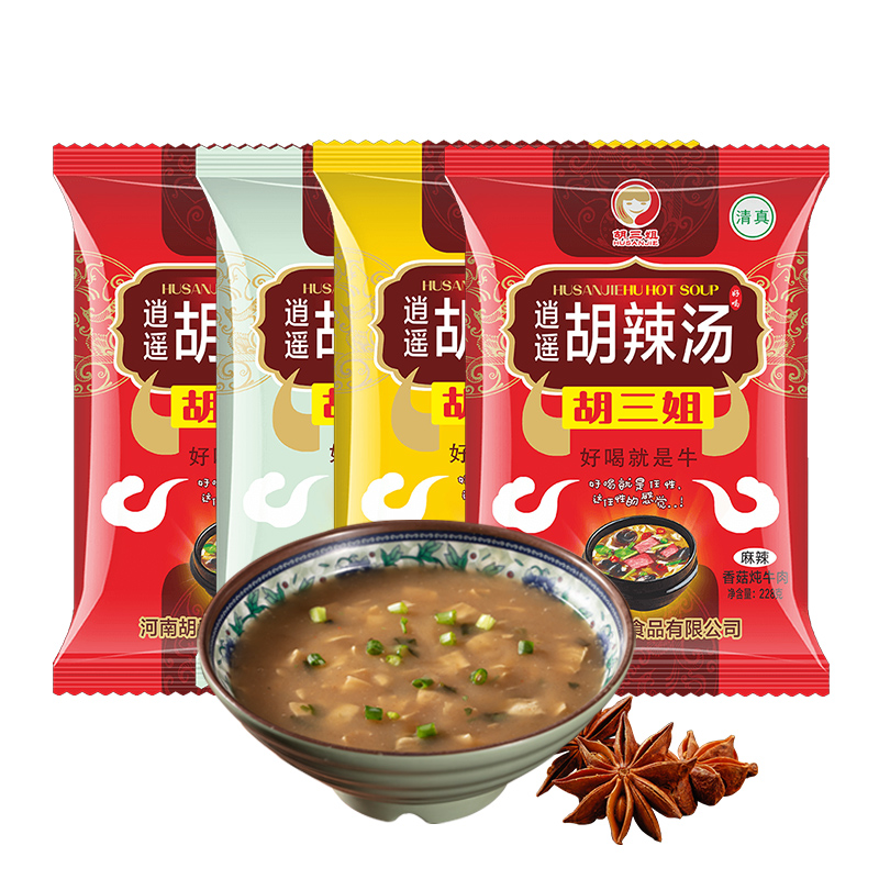 Hu Sanjie Hu Spicy Soup Xiaoyao Town Henan Authentic Specialty Convenient Instant Soup Breakfast Soup Commercial 228G *4 Bags