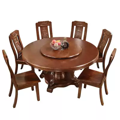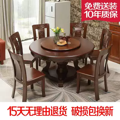 Solid wood dining table, large round table and chair combination 10 people Chinese home dining table oak round with turntable 1 8 meters