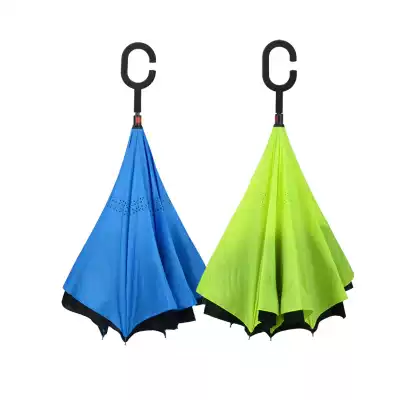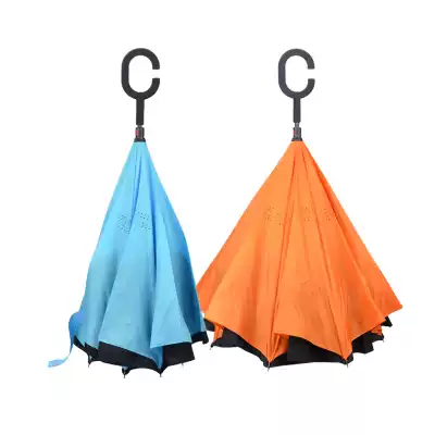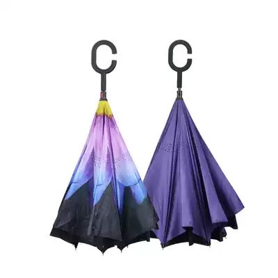 Reverse umbrella Double-layer long-handled umbrella Men's and women's sunny umbrella Creative windproof car hands-free standing folding anti-bone umbrella