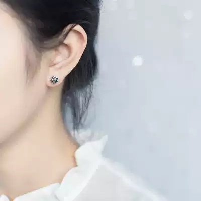 Love Rocky S925 silver five-pointed star ear needle girl Japanese Korean style fashion Thai silver retro black and white diamond ear jewelry