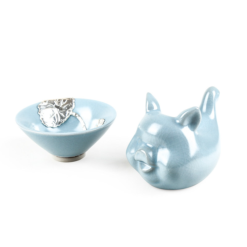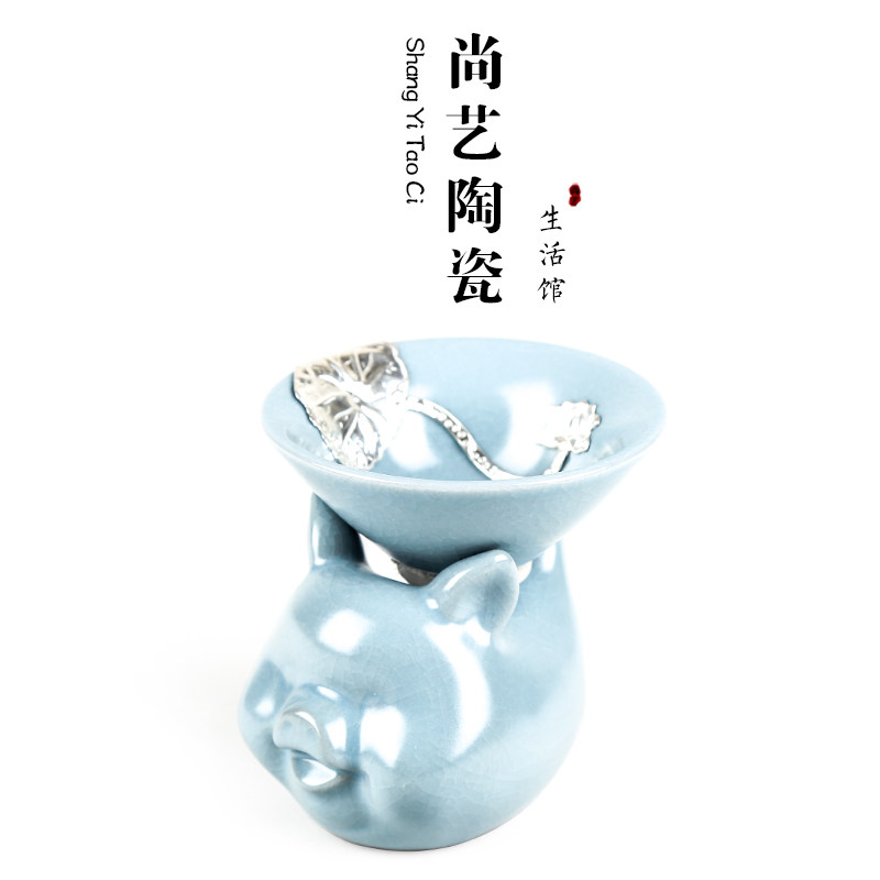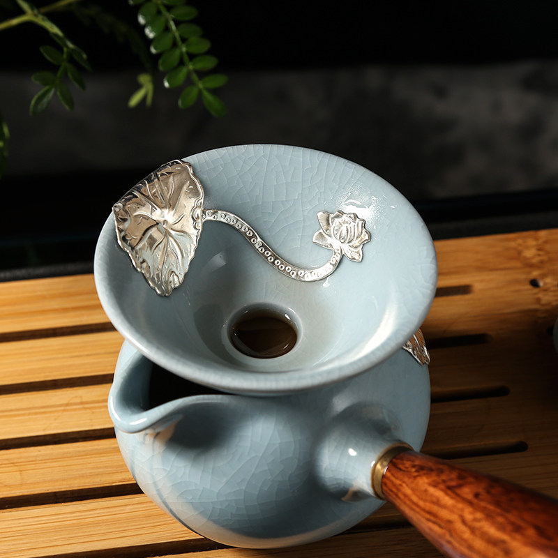 Ru Kiln Handmade Inlaid Silver Tea Leak Ceramic Tea Leaf Filter Mesh Open Sheet Ru Porcelain Tea Nursery Korn Tea Accessories