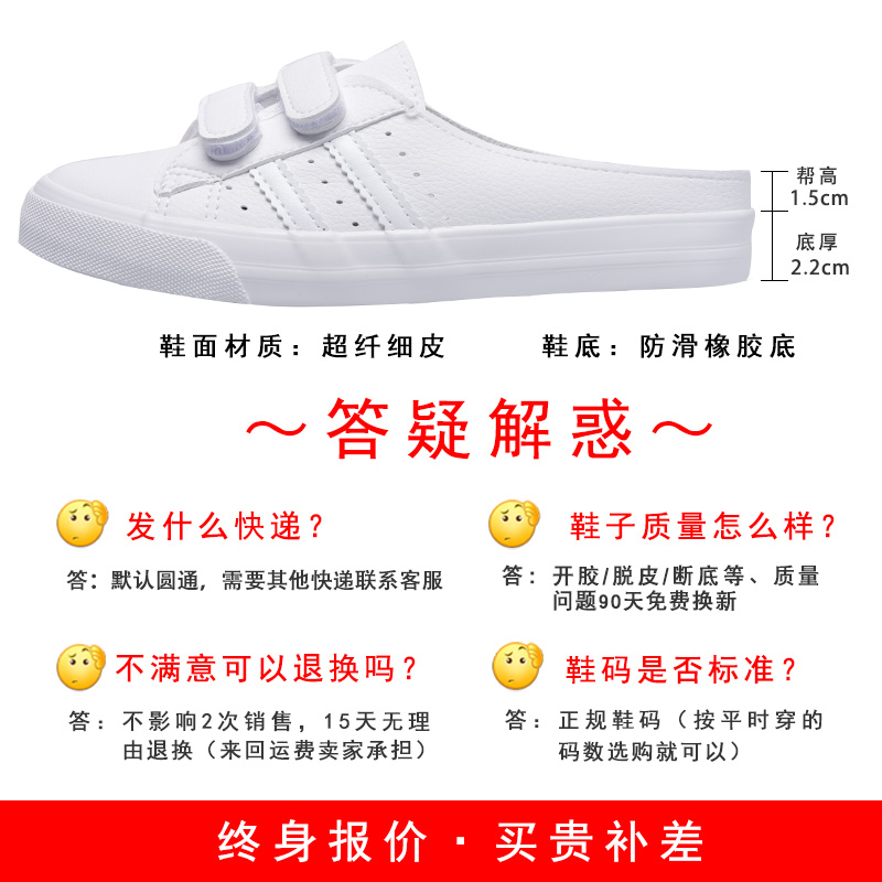 Summer new half slip small white shoes 2023 spring and summer thin blast blast sloth slacker shoes