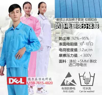 QCFH anti-static clothes dust-free protection workshop short top white and blue two-piece Foxconn overalls suit