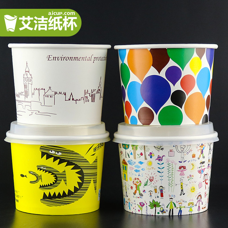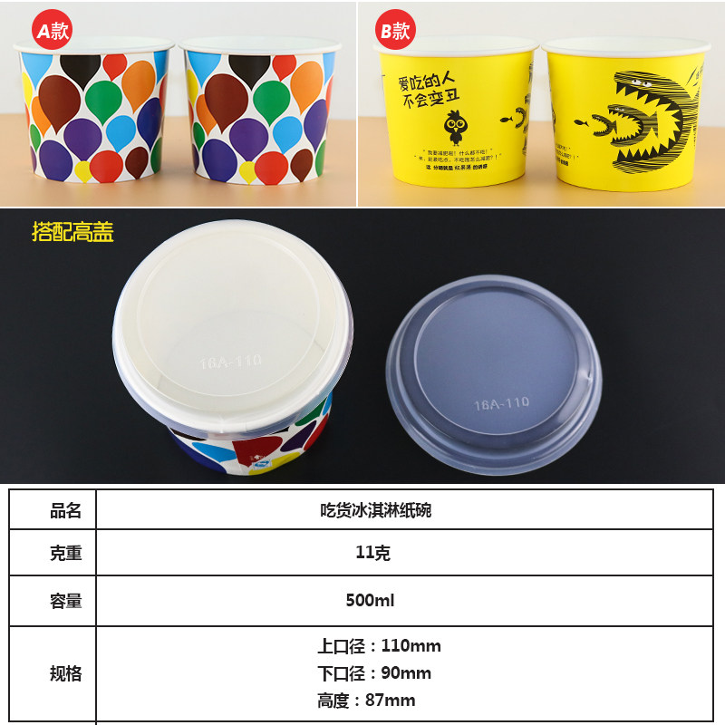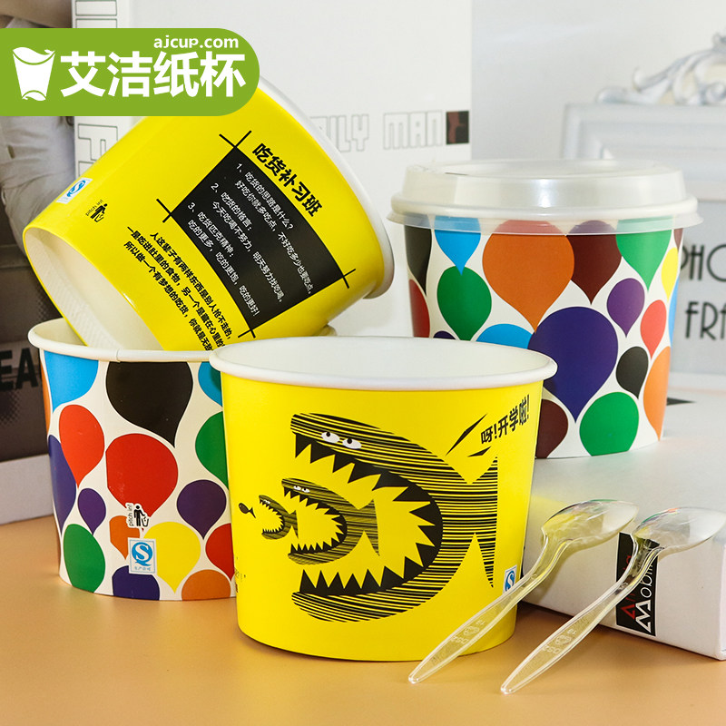 Disposable ice cream paper bowl thickened 500ml cartoon large ice cream fry yogurt cup 100 sets