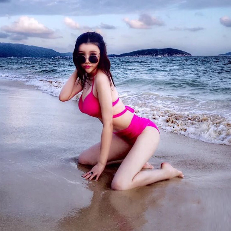 Korean classic solid color swimsuit sexy steel to gather thin bikini hot spring swimsuit women's three-point tour suit