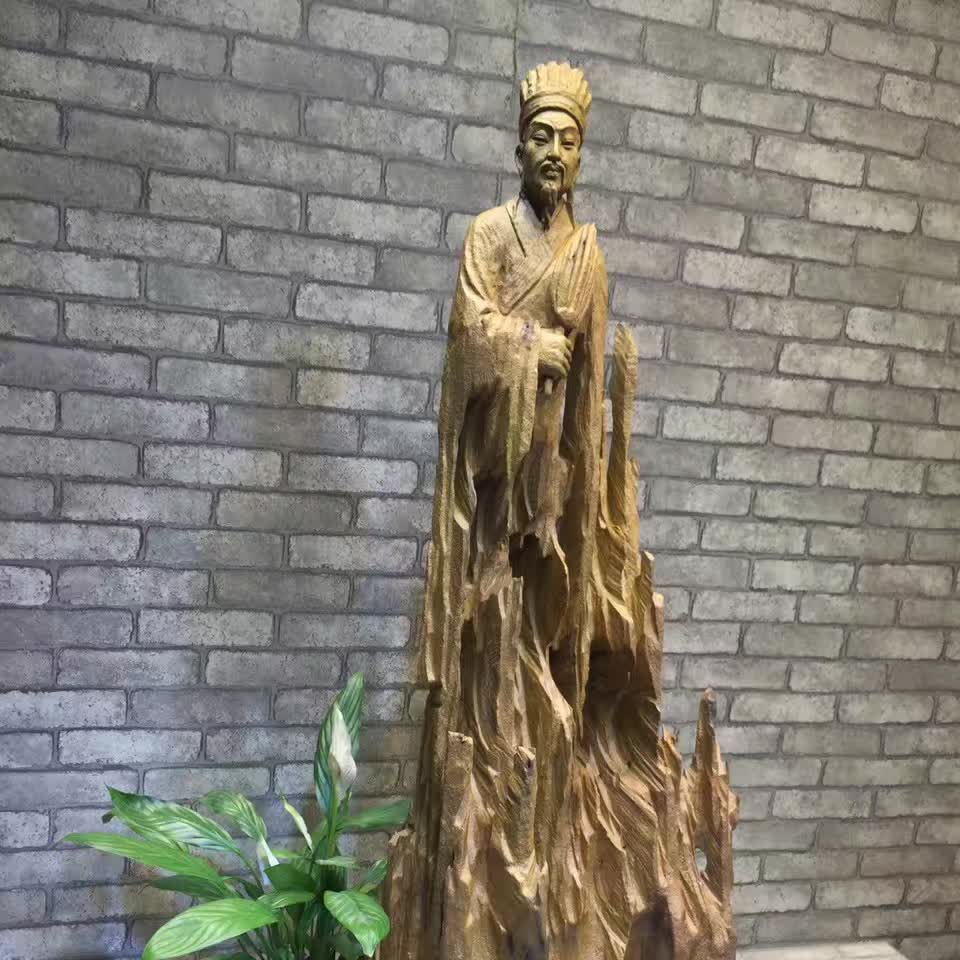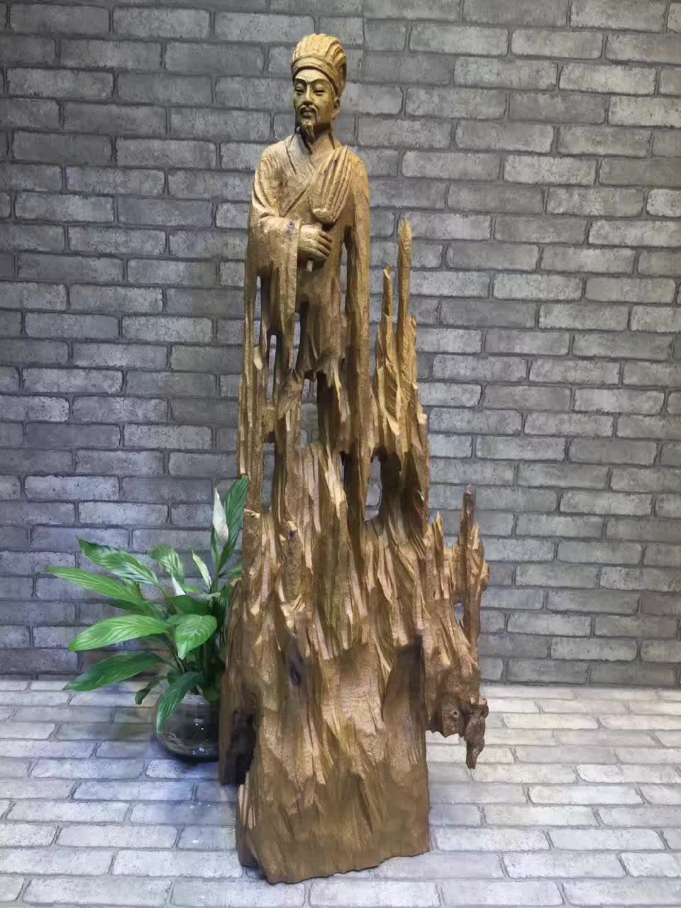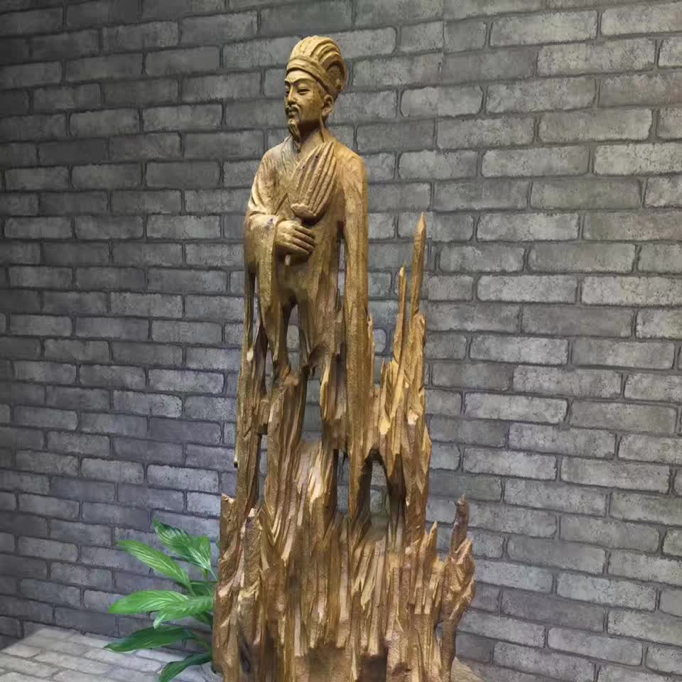 Wood in root engraving plant Zhuge Liang Kongming natural wood sculpted Numwood Hand-carved Living Room Office Pendulum direct sale