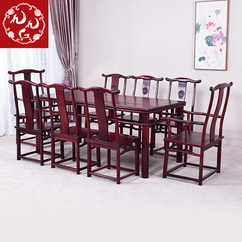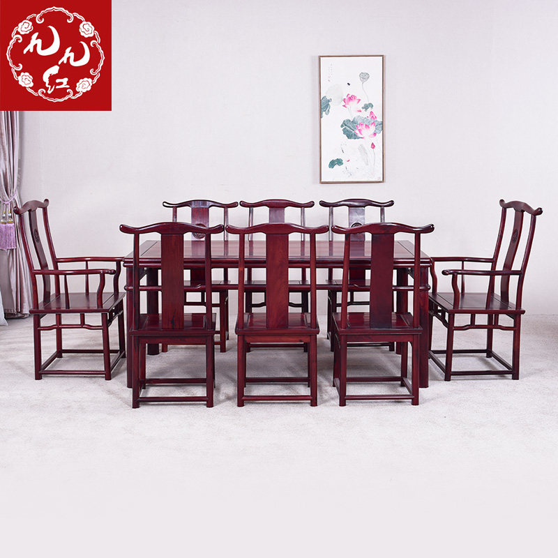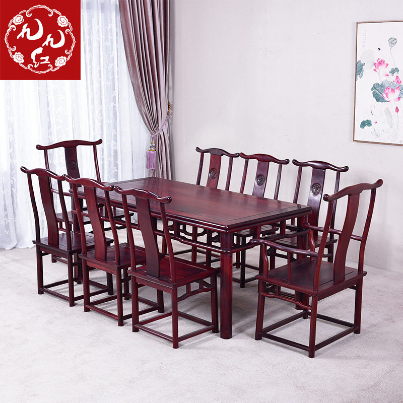 Barry Dalbergia Ming-style chair cover flower branch dining table red sour branch rectangular mahogany furniture classical Chinese five-piece set