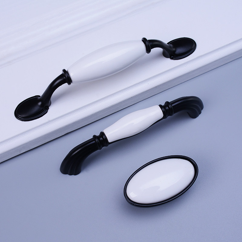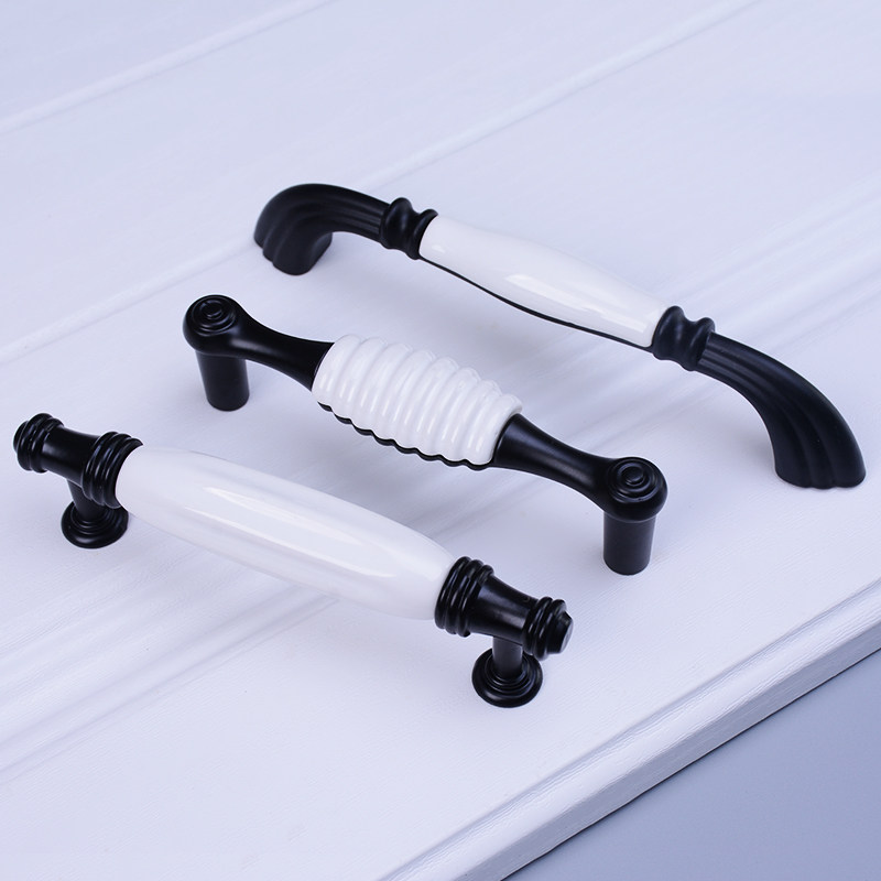 Black and white ceramic handle European style modern minimalist overall cabinet door handle American wardrobe drawers cabinet door real gold handle