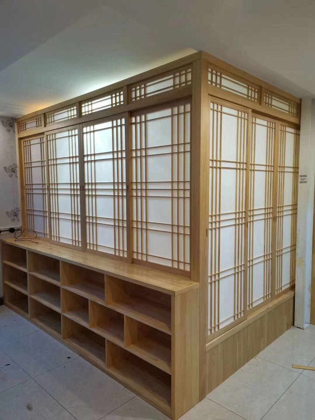 Set as a day-style tatami solid wood grid door and room Ramen track moving door Double side Zhangzi pine sepp break door