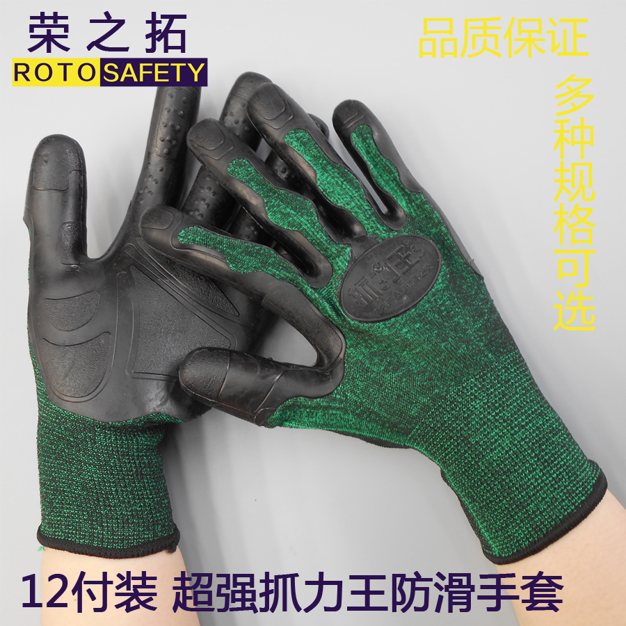 Rongzhi Tuo Grip Power King Glove Pure Rubber Abrasion Resistant Soft Slip-Proof And Durable Labor Protection Gloves Construction Site Steel Bar Working Man