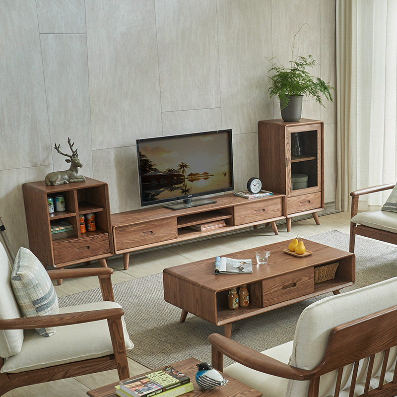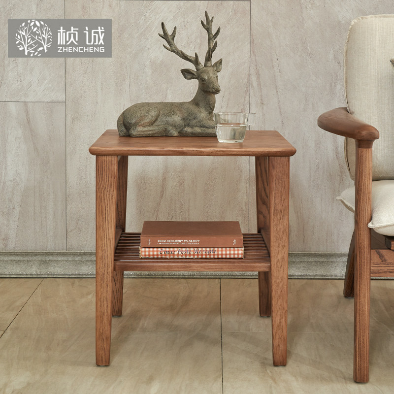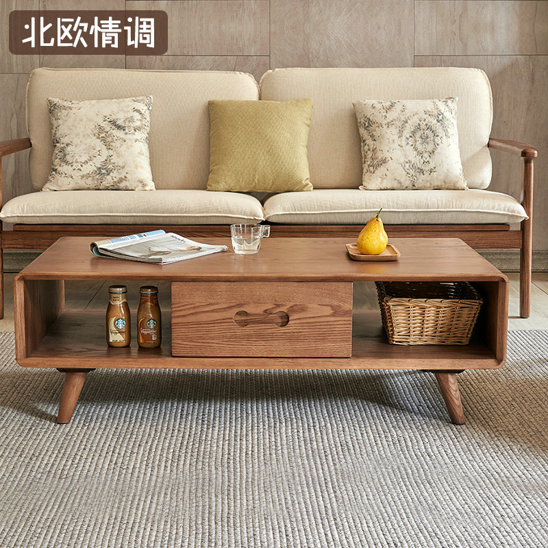 Solid wood tea table Nordic small family type log minimalist modern small tea table solid wood white wax wood tea table living room Home-Taobao
