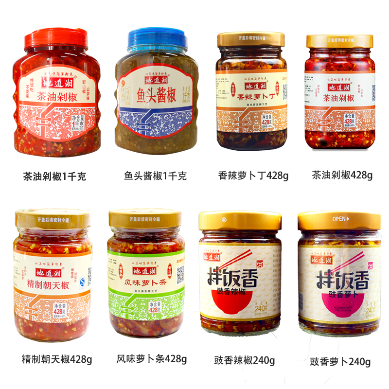 (Cyan) Fish head sauce pepper 1kg (Red) Tea oil chopped pepper 1kg Authentic Hunan steamed fish fresh 900g Authentic Hunan crayfish sauce 248g*2 bottles 240g*2