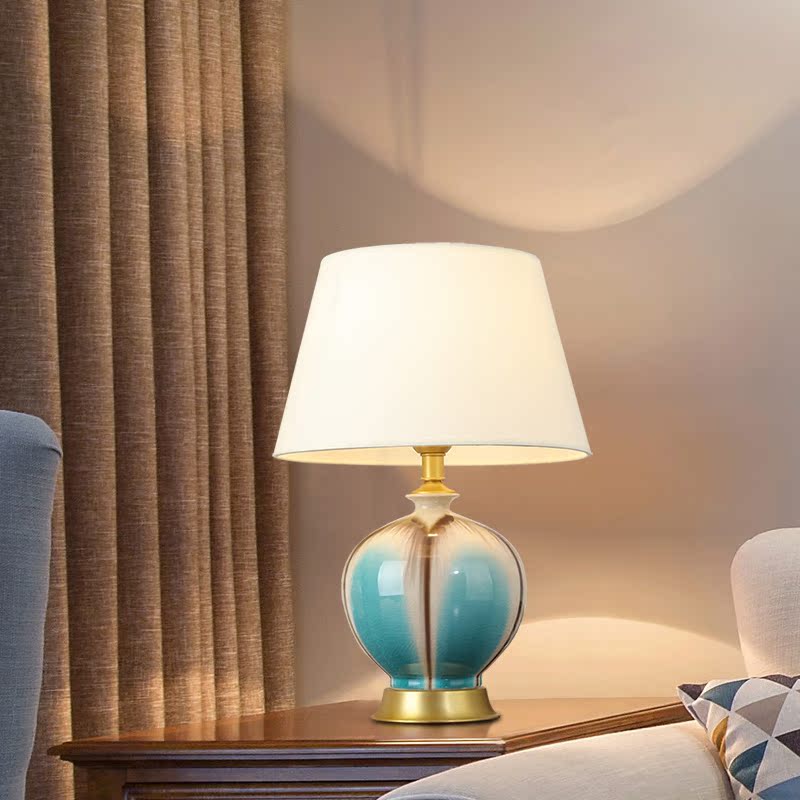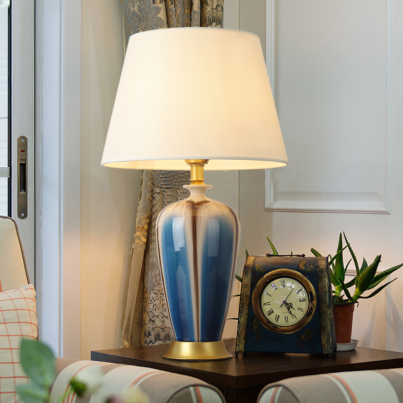 American countryside Jingdezhen Ceramic desk lamp Bedroom bed head cabinet Living room Full bronze Decorative Wedding house retro table lamp Chinese
