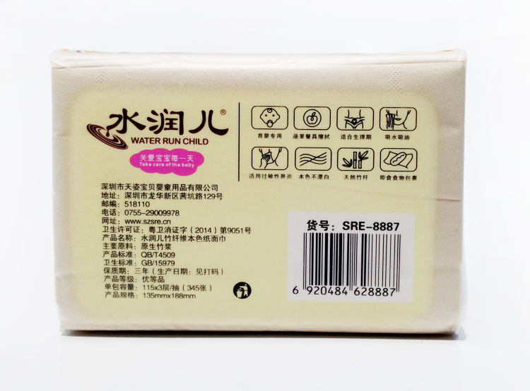 Water-moisturizing children Bamboo fiber natural color pumping paper towels paper