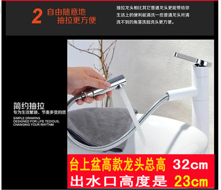 Makeup Room White Rose Face Basin Pull-out Tap Hot And Cold Hand Wash Washbasin Extension D3EB-4C72