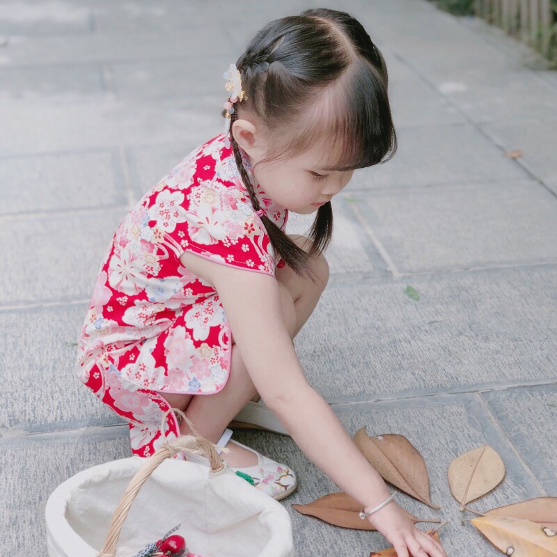 Girl's New Qipao 2022 Summer Children Princess Dress Baby Retro Child Clothing Cotton Hemp Printed Chinese Dress