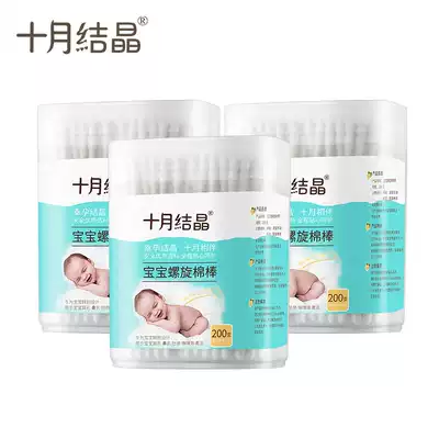 October Crystal baby fine shaft cotton swab Ear and nose cleaning cotton swab Baby special double-headed newborn 200 * 3 boxes