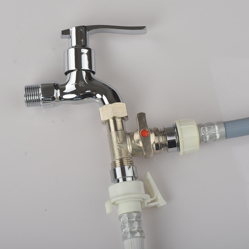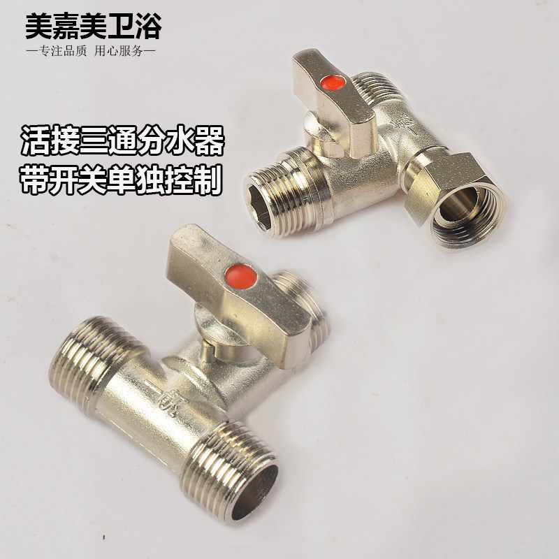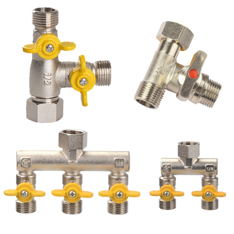 4 points all copper three-way joint ball valve one in two out with switch valve Double faucet water pipe Washing machine water separator