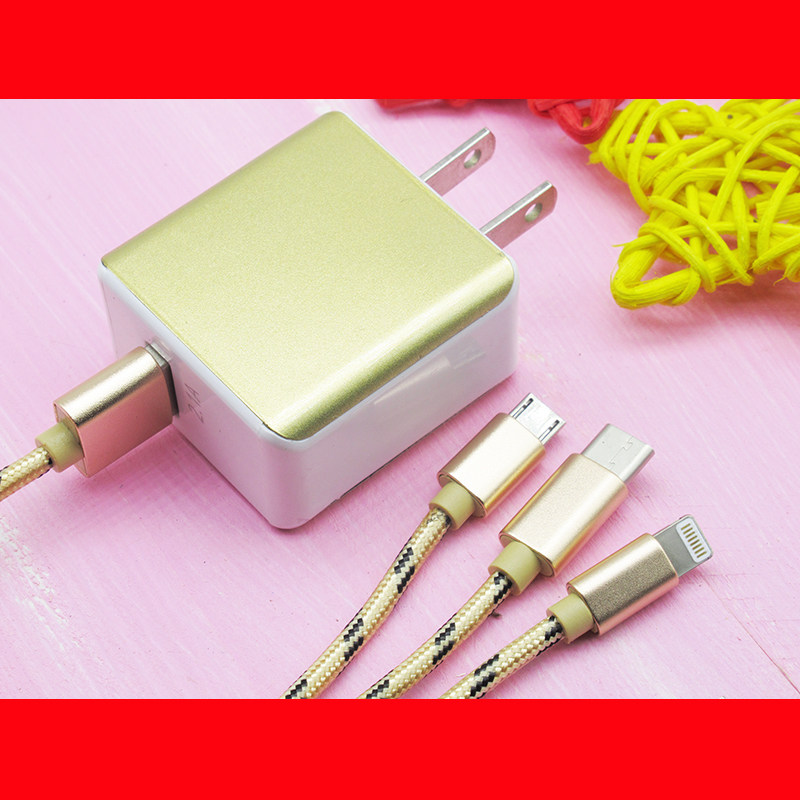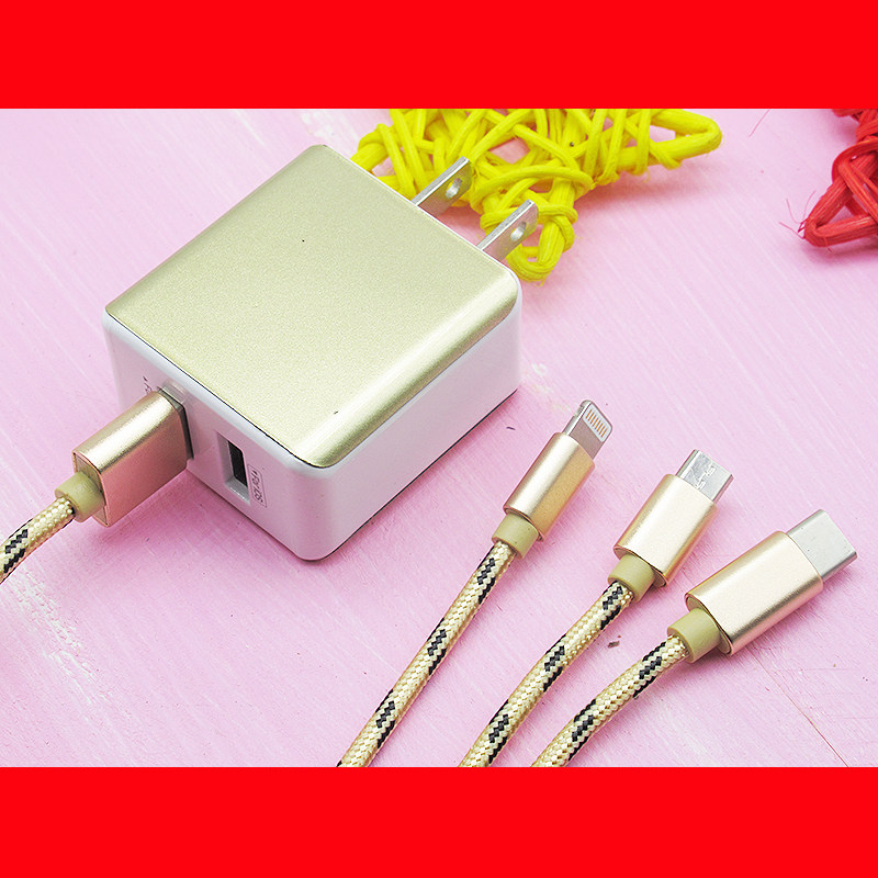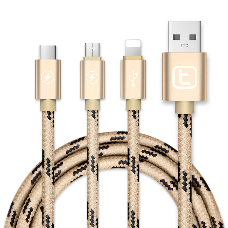 Long data line length suitable for Apple Android type-c one-drag triple multifunction charger lead 2A Fast charge