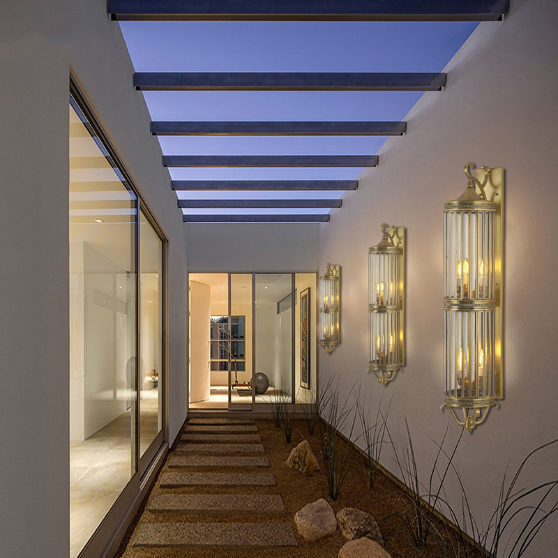 Outdoor wall lamp European-style all-copper villa gate on both sides of the courtyard wall outdoor waterproof stair aisle long lamp