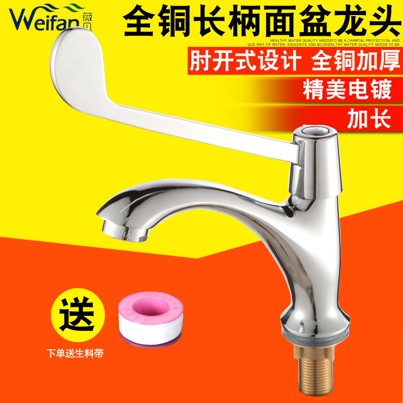 Long handle tap Elbow Touch tap Long handle full copper elbow open lengthened handle elbow touch switch Handwashing tap