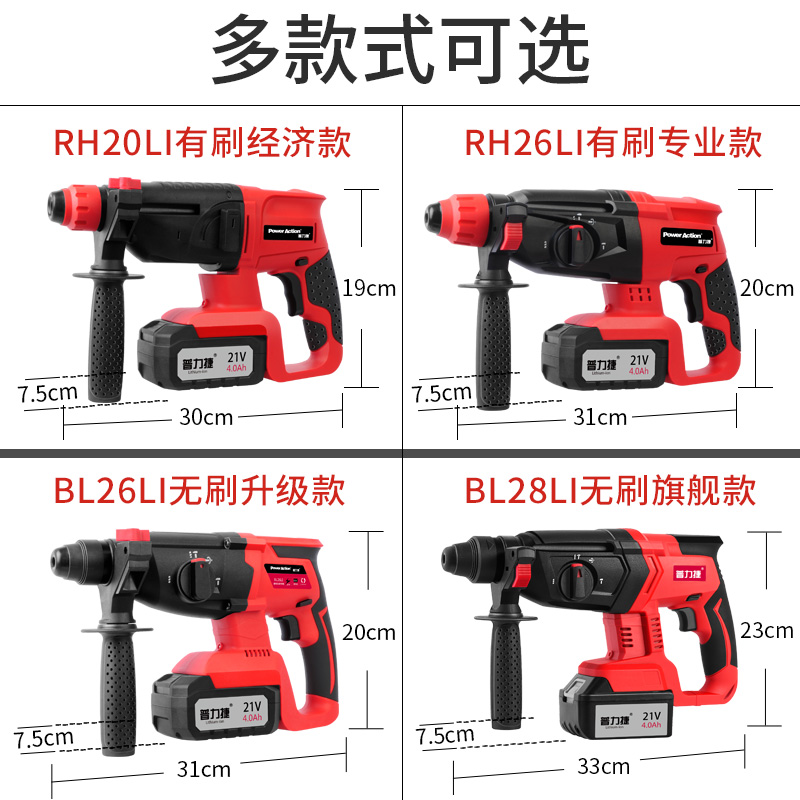 Dual-function 20 lithium-electric hammer drill 1 4Ah battery pack double function 20 lithium-electric hammer 2 4Ah battery pack 3 function brushless 26 lithium hammer 1 4Ah battery three function without three function