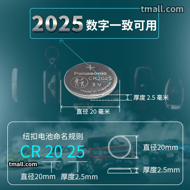 Panasonic CR2025 Mercedes Benz Original C-Class C200l Glc Dedicated C180 200 260 280 300 Car Key Smart Remote Control Button Battery Mercedes Electronic Change Key