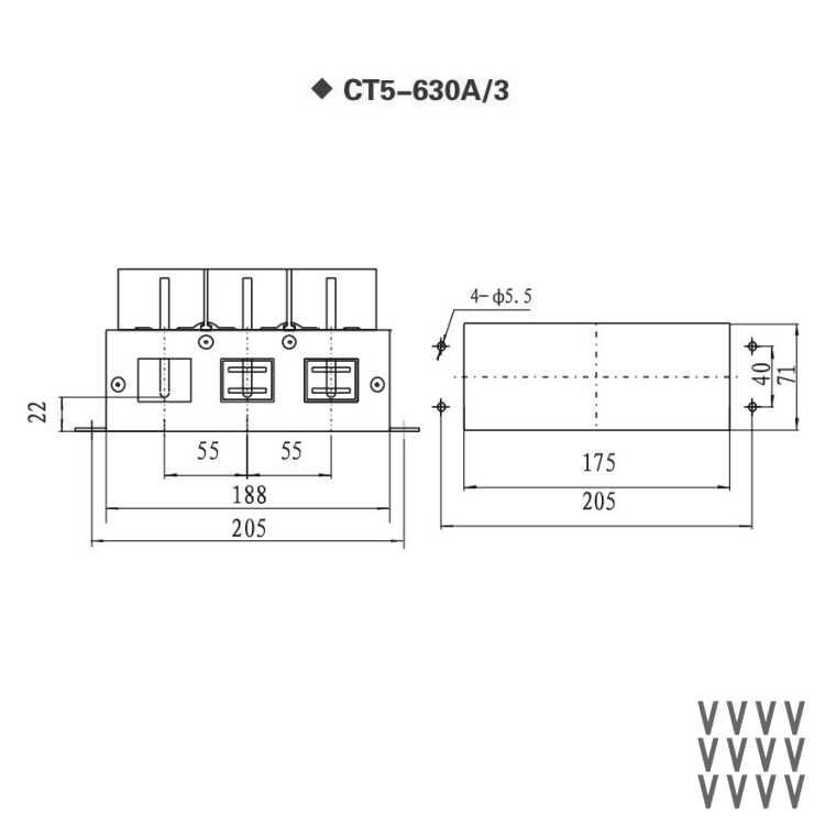 CIWZ Wenzhou Sino-Italian appliances CT5-630A 3 main circuit one time connector contact static plug-in