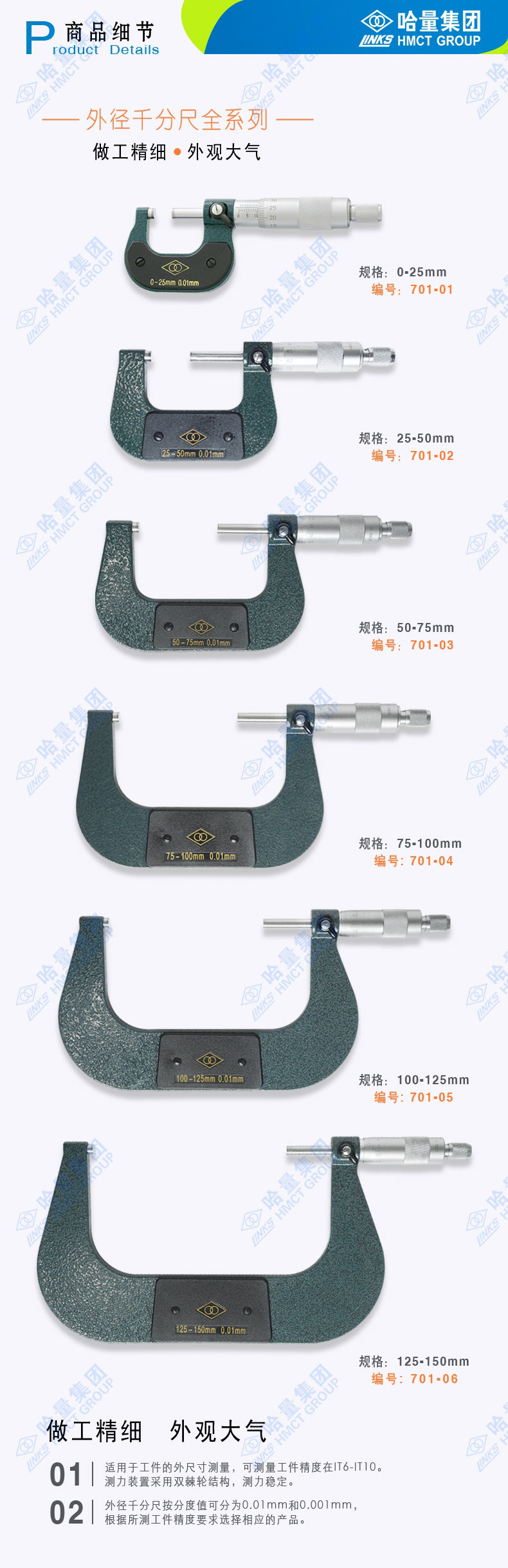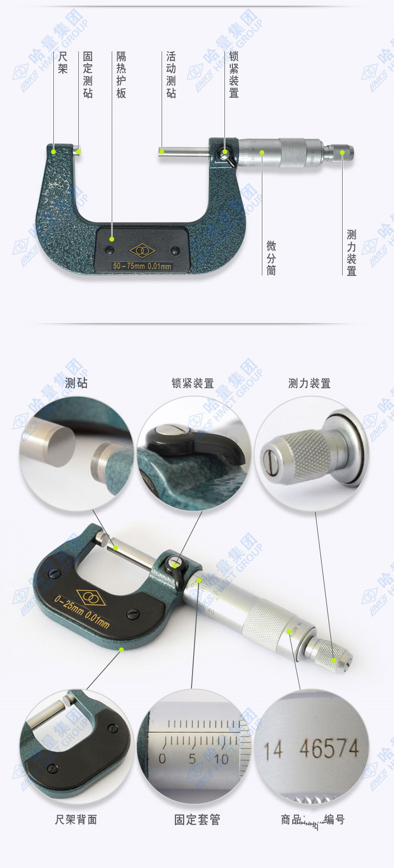Kazakh Outer Diameter Micrometer 0-25-50-75-100-150-300mm 0 01-01 Spiral Micrometer