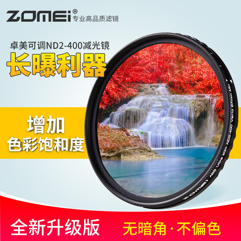 ZoMei Adjustable ND mirror Dimming mirror ND2-400 49 52 58 67 72 77 82mm medium gray mirror Long explosion night car rail mirror Waterfall atomization mirror