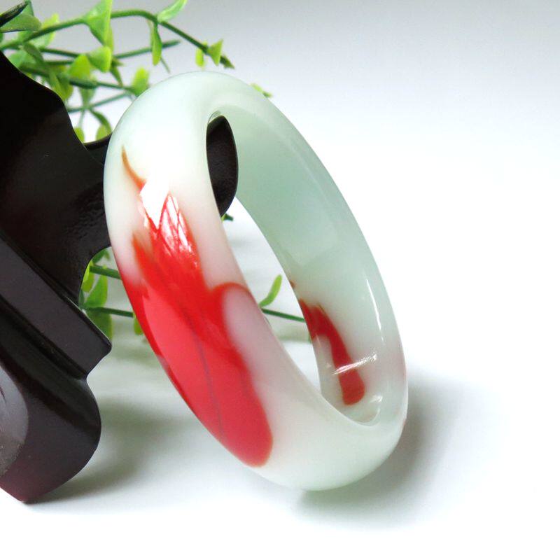 Xinjiang Hetian Jade fine gold silk jade chicken blood floating flower Gobi jade bracelet children with certificate