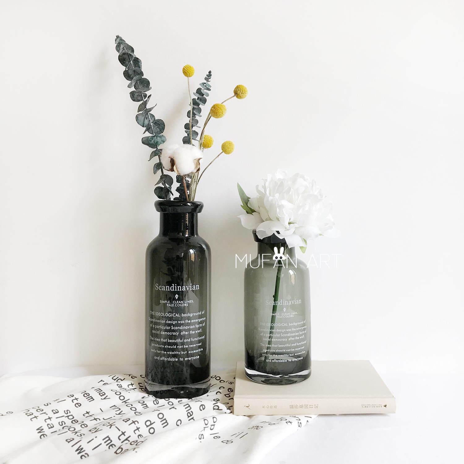 ins Nordic style English glass vase retro literary flower arrangement photo pose decorative props