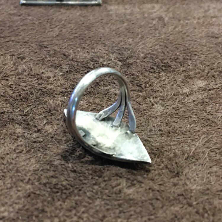 1960s American Indian Zuni Tribal Snake Eyes Natural Turquoise Sterling Silver Vintage Dong Ring Women's Size 11