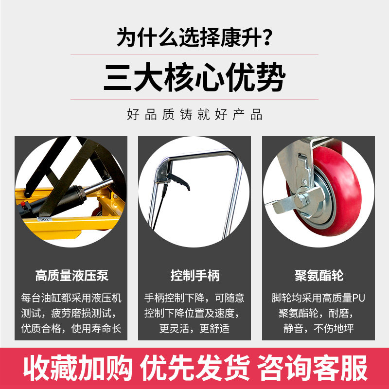 Kangsheng platform truck 500KG raised by 1 5 meters (integrated pump)