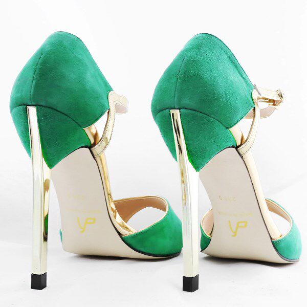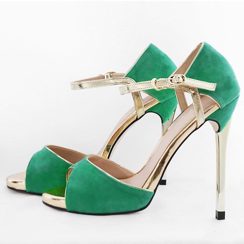HChen Korean handmade high custom light luxury sexy stitching golden side empty frosted open toe high heels