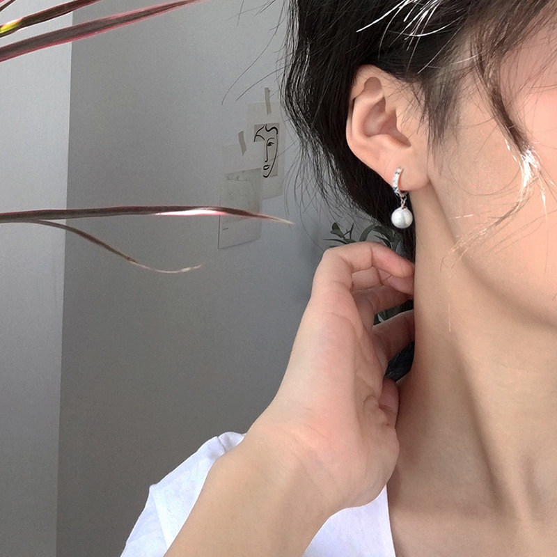 Imported Swarlow carving pearl earbutton 925 pure silver plated platinum simple earrings Han edition short ear crashes