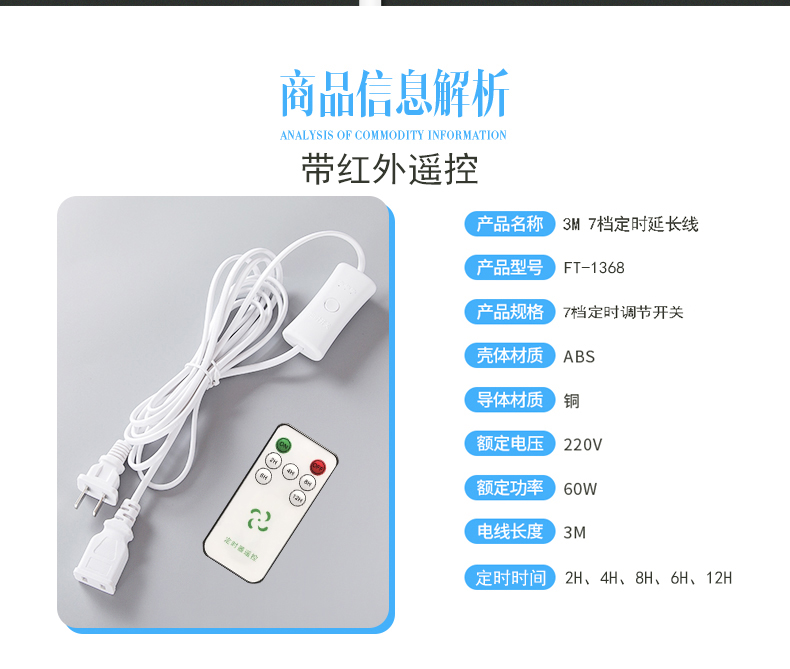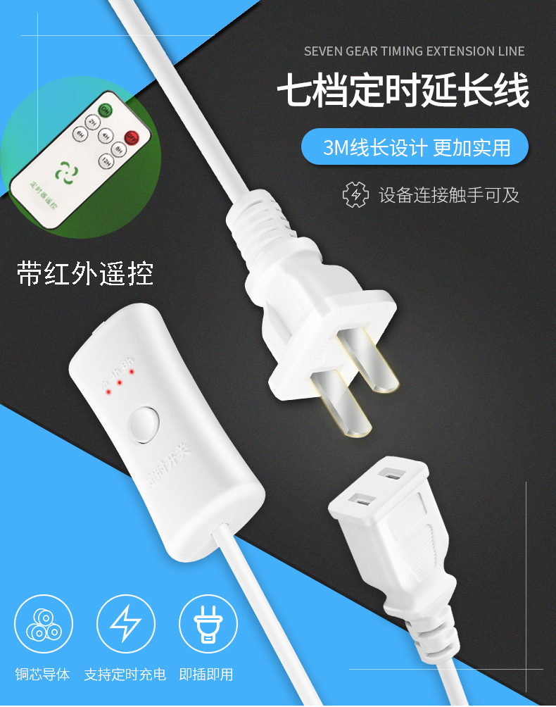 Remote control timing breeze ceiling fan extension cable Power extension cable elongation 3 meters Zhonglian small ceiling fan matching cable
