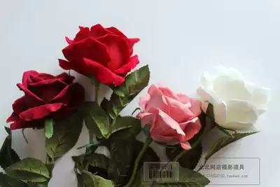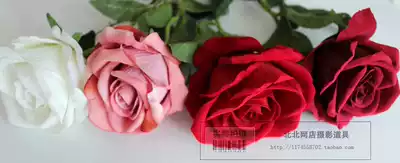 High-end single simulation rose fake flower silk flower flannel flower photo photography props background flower arrangement decoration