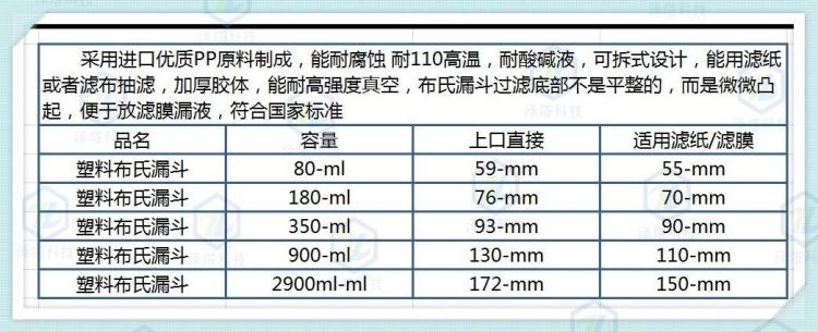Plastic Buchner funnel pp plastic funnel suction filter funnel detachable suction filter funnel laboratory funnel
