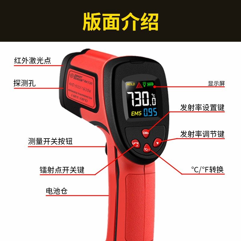 Infrared photometric temperature gauge industrial infrared test temperature high-precision thermometry detector detection thermometric gun oil temperature gun meter