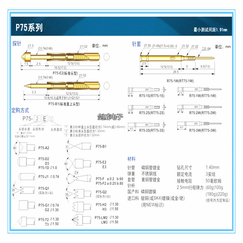 Test needle PA75-LM2 crown head probe diamond head 1.0 diamond head 1.3 lace head probe Huarong head pin