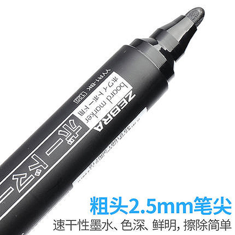 Japan ZEBRA zebra large head white board pen erasable water-based note pen erasable white board pen marker pen black