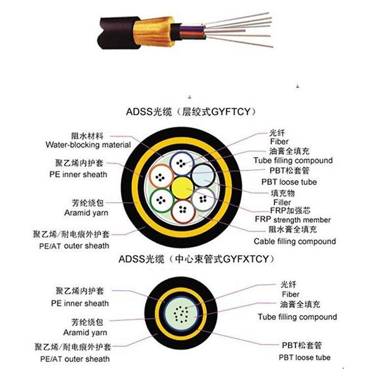 adss optical cable 24 core optical fiber full medium self-supporting ADSS optical cable 48 core optical cable manufacturer can process and fix