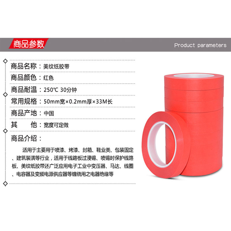 Red metextured paper adhesive masking film pet high temperature resistant red composite metextured paper not dry adhesive tape 20mm