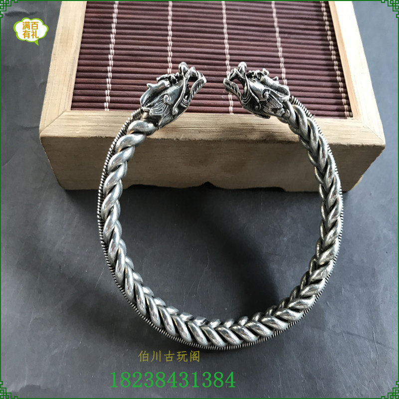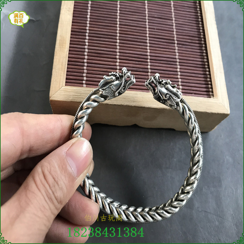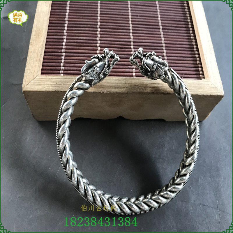 Foot silver ornament s925 Miao silver bracelet male and female with Tibetan silver fashion retro silver decorated with opening bracelet double tap