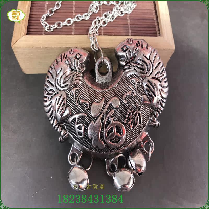 S925 Pure Silver Lock Baby Long Life Hundreds Fu Lock Lifetime Safe Lock Imitation Silver Handmade Necklace Silver Lock Hanging Ornament